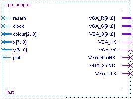 The VGA adapter was created at the University of Toronto for a course similar to CPEN 311. The description below is enough for you to use the core, but you can find the complete specification at [the original site](http://www.eecg.utoronto.ca/~jayar/ece241_07F/vga). Some of the following figures have been taken with permission from that website (with permission).